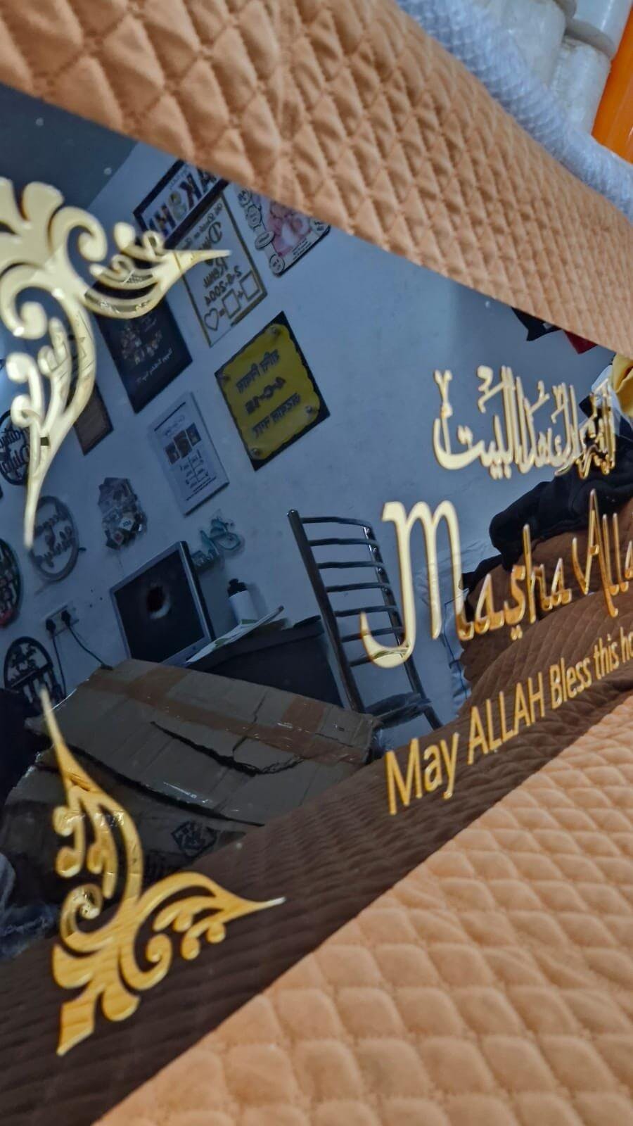 This elegant Framed MASHA ALLAH 3D Wall Art will add an affordable touch of sophistication to any home entrance. The intricate design features the phrase "May ALLAH BLESS THIS HOME DUA" and can be delivered all over India. Enhance your space with this unique and meaningful decor piece.